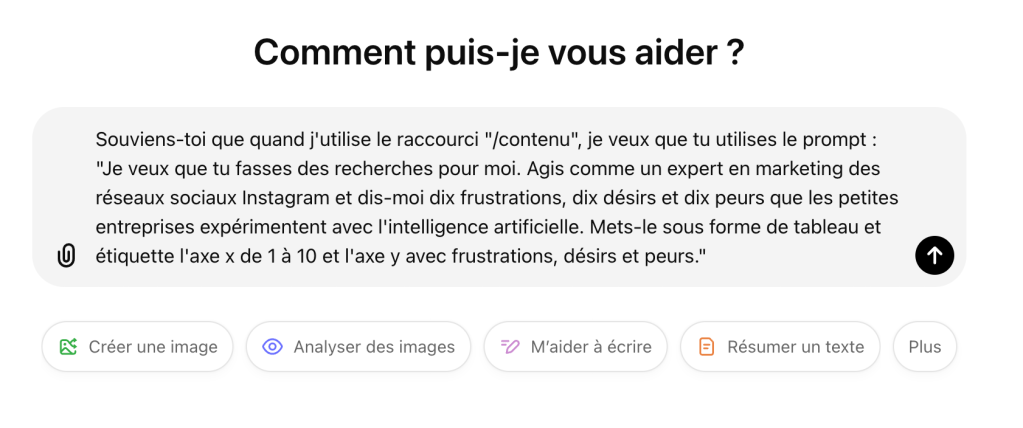 - Écrivez : « À partir de maintenant, souviens-toi que le raccourci /[nom] correspond à [votre prompt] »